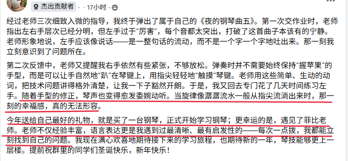 今年我送给自己最好的礼物就是跟菲比老师学钢琴。老师太棒了!